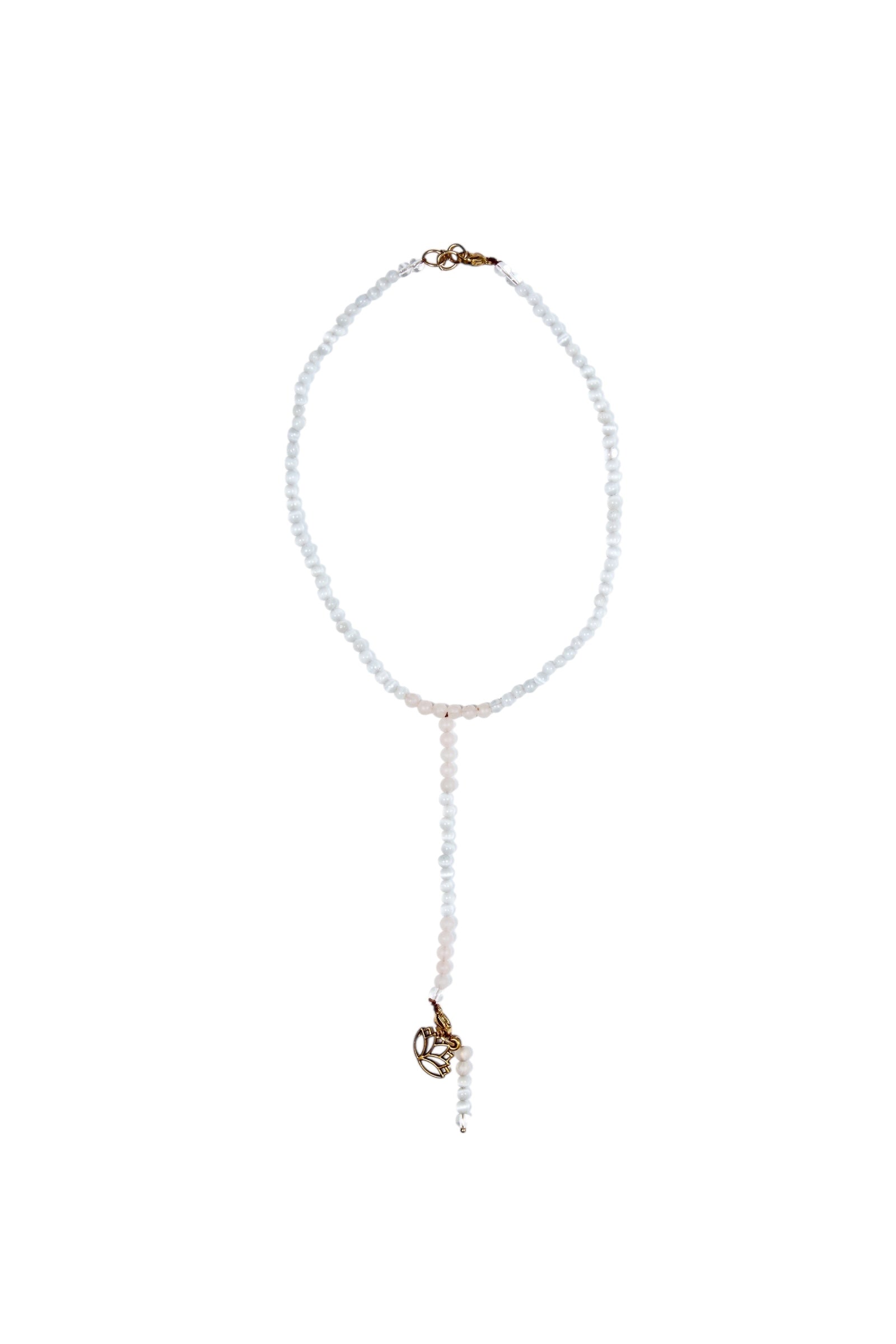 celénite, quartz rose, lotus et possibilité de changer le pendentif