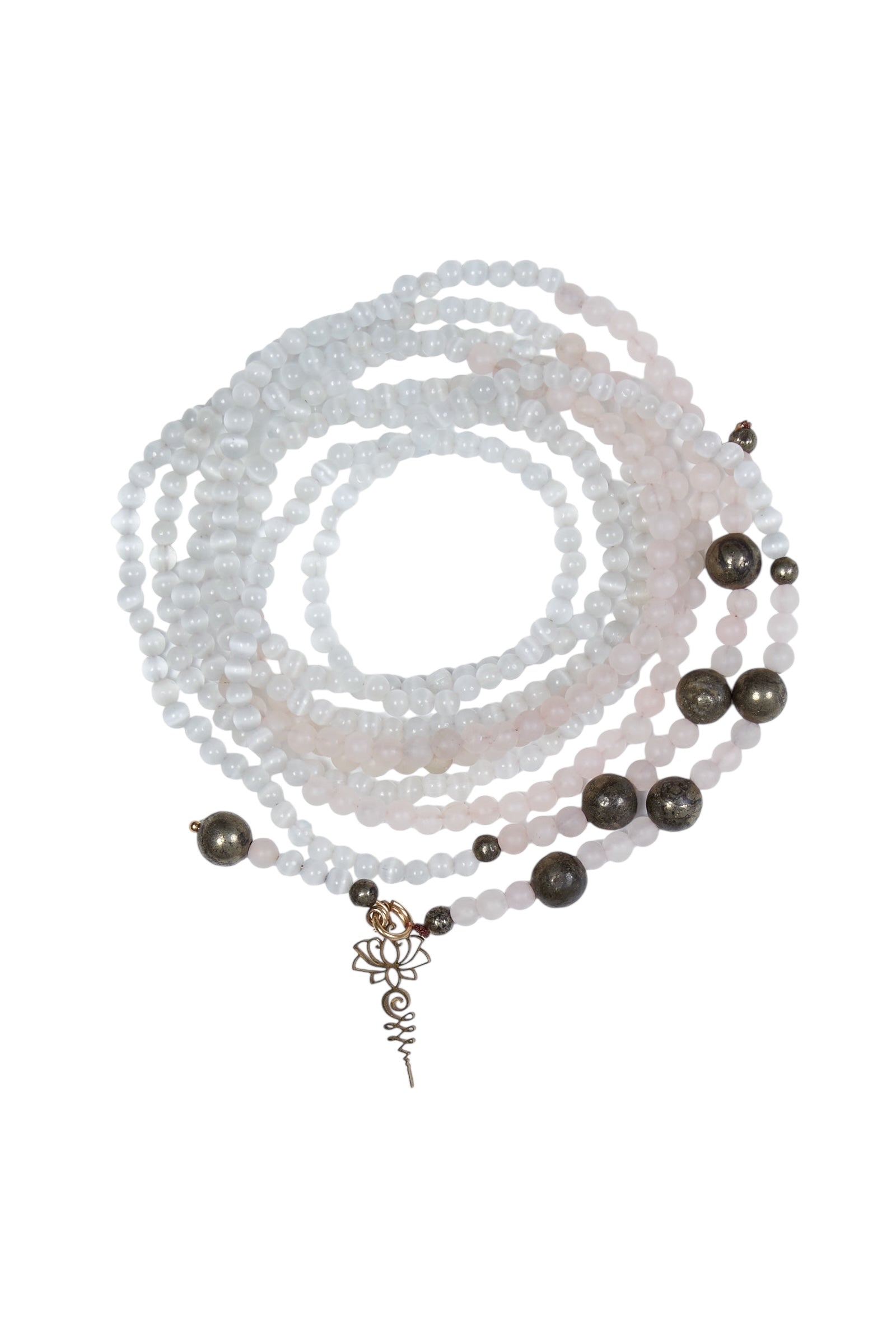 sélénite, quartz rose et pyrite