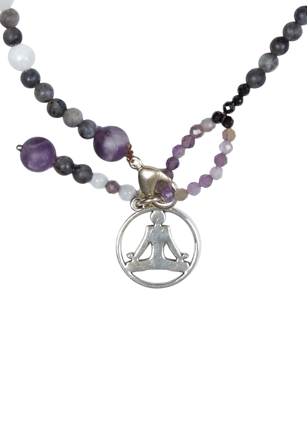 labradorite, sélénite, spinelle noir et améthyste