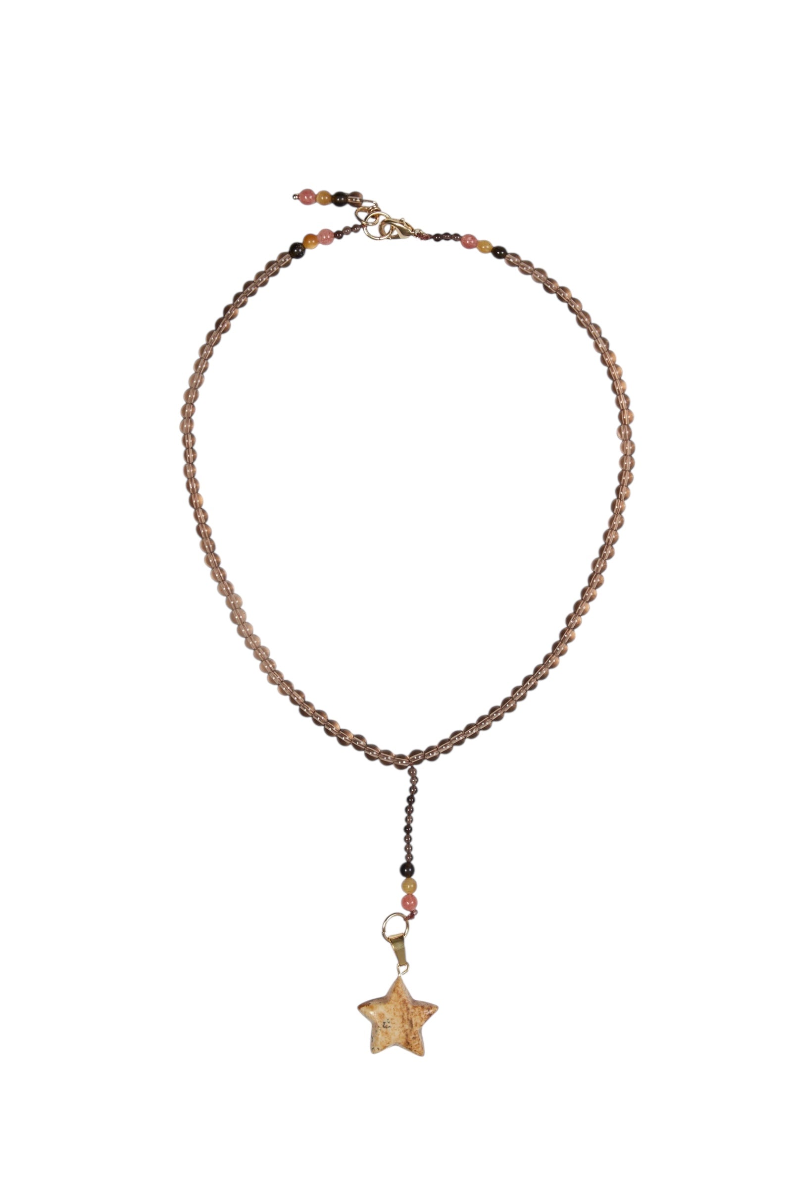 quartz fumé, oeil de tigre et pierre de soleil